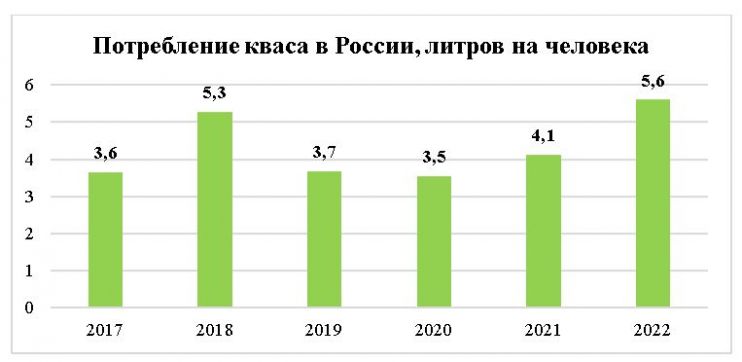 Аналитики Россельхозбанка подсчитали, что потребление кваса в России выросло в полтора раза: в 2017 году россиянин в среднем выпивал 3,6 л кваса в год, а в 2022 году – уже 5,6 л.