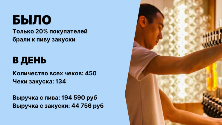 - Подсказки, какую закуску продавать.