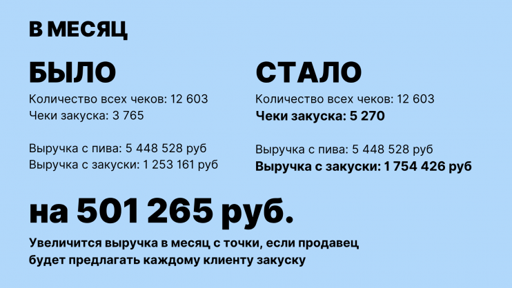 - + 501 265 руб в месяц — без увеличения трафика покупателей.