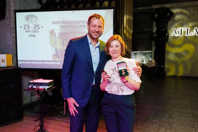 Нагрудным знаком «Почетный работник пивоваренной отрасли» награждена Татьяна Тихонова, руководитель пивной группы отдела продаж компании «ДЁЛЕР НЭЙЧРЭЛ ФУД ЭНД БЕВЭРИДЖ ИНГРЕДИЕНТС».