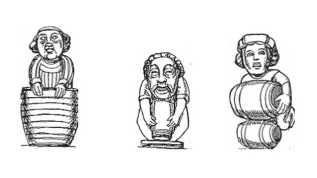 Отец Тейлор добавил, что на средневековой крыше церкви святого Коллена в Лланголлене изображена история распития пива: один человек пытается катить одновременно две бочки с пивом, другой наслаждается содержимым, а третий следит за тем, чтобы ни капли не пропало даром.