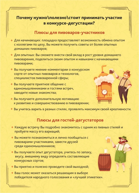 Конкурсы и фестивали, вне всякого сомнения, помогают развиваться пивоварам, ведь это мероприятия, где можно пообщаться с соратниками по хобби, попробовать что-то интересное, выслушать мнение о своём пиве, похвалить или поругать других пивоваров.