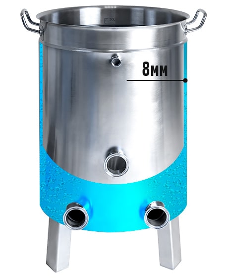 Не стану описывать технические характеристики и комплектацию этой пивоварни, их вы без труда найдете на официальном сайте проекта. Ключевым моментом в этой разработке является пароводяная рубашка вокруг заторного чана. Опытным пивоварам-домашникам не нужно объяснять преимущества нагрева таким способом. В двух словах: скорость нагрева, равномерность температуры во всём объеме, отсутствие пригорания к ТЭНу или ко дну емкости, вдобавок возможность быстрого охлаждения готового сусла без погружного чиллера.