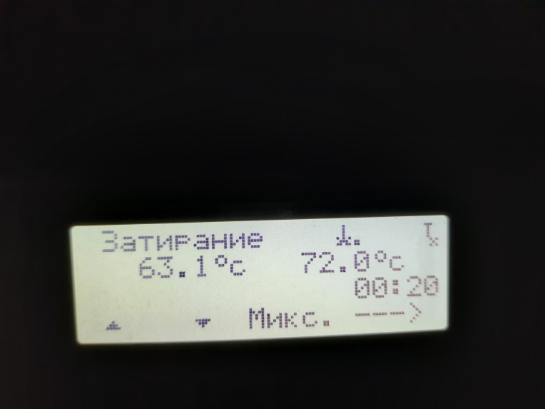 Прогнал короткий цикл варки на воде, чтобы промыть систему, понять, как оно всё работает и убедиться в герметичности всех соединений. Заодно поигрался с блоком управления. Осваивается он легко, интуитивно понятен и логичен.