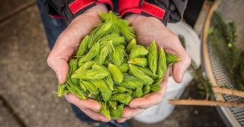 — Некоторые ингредиенты требуют тонкости, а не преобладания, но еловых побегов никогда не бывает много. Чем больше добавишь, тем лучше результат, — говорит он.