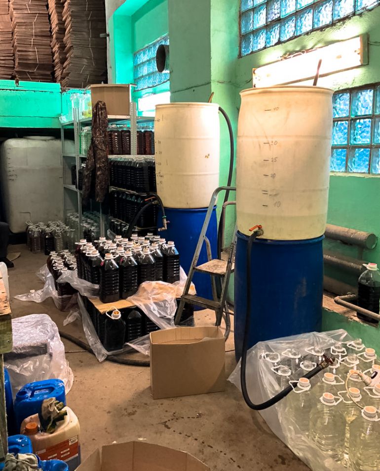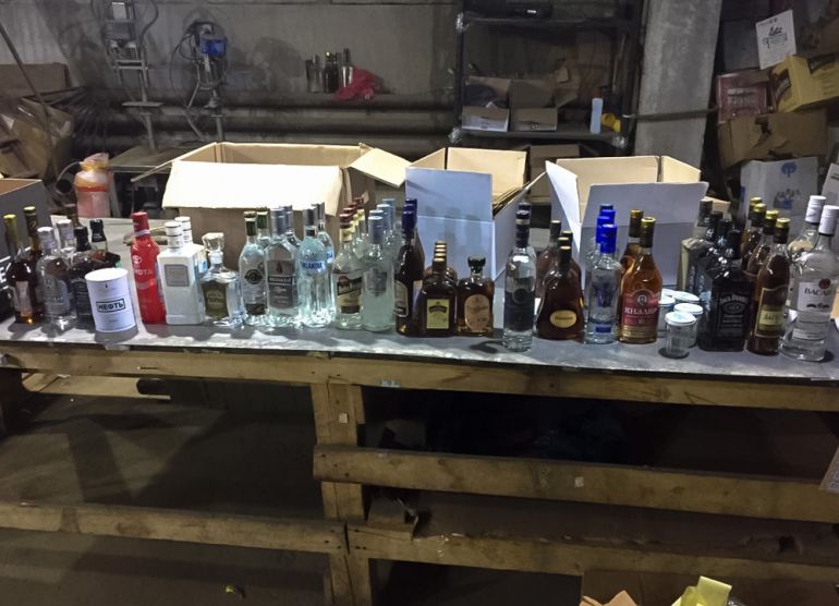 Обнаружена кустарная линия розлива, более 300 000 бутылок алкогольной продукции, свыше 34 000 литров спиртосодержащей жидкости, а также 25 000 литров фармацевтической субстанции этилового спирта (этанола, крепостью 95%) производства компании «Армавирская межрайонная аптечная база».
