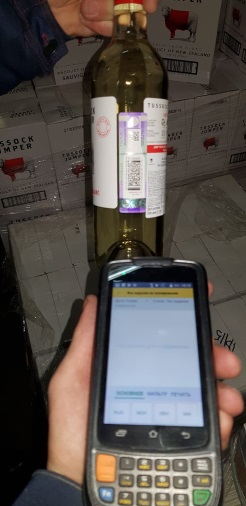 - Оклейка полученными от импортеров марками бутылок и фиксация этих марок в учетной системе на базе АСФ: ТСД ЕГАИС с помощью поточного сканера