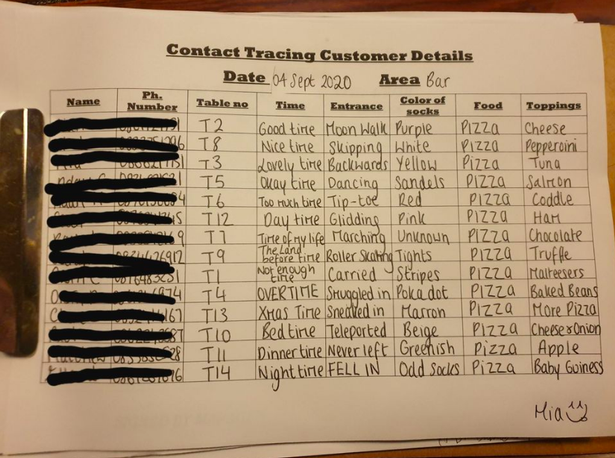 В дублинском пабе Harry Byrnes творчески подошли к этой мере: в соцсетях распространилось фото журнала, который ведут в пабе. Там записано, каким образом клиент вошёл в паб (маршируя, танцуя, на цыпочках), в каких носках он был и с каким топингом заказал пиццу.