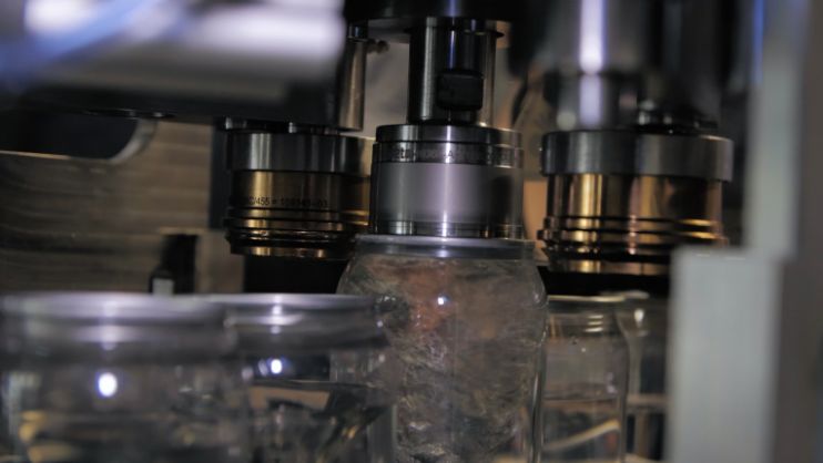 Меня очень не устроило качество среза у заказанных образцов. Среди них был высок процент брака, потому что с таким неровным зарубцованным краем банку невозможно закатать герметично или вообще невозможно укупорить. Наша же банка производится по моностадийной технологии. Это значит, что ПЭТ-гранулы подаются в литьевую машину, где сначала формируется фланец горловой части, а затем происходит раздув и формирование тела и дна банки. Так достигается идеально ровный край. Кстати, благодаря тщательной подготовке выдувных форм банка выходит без характерных для ПЭТ бутылок швов, а это добавляет эстетики.